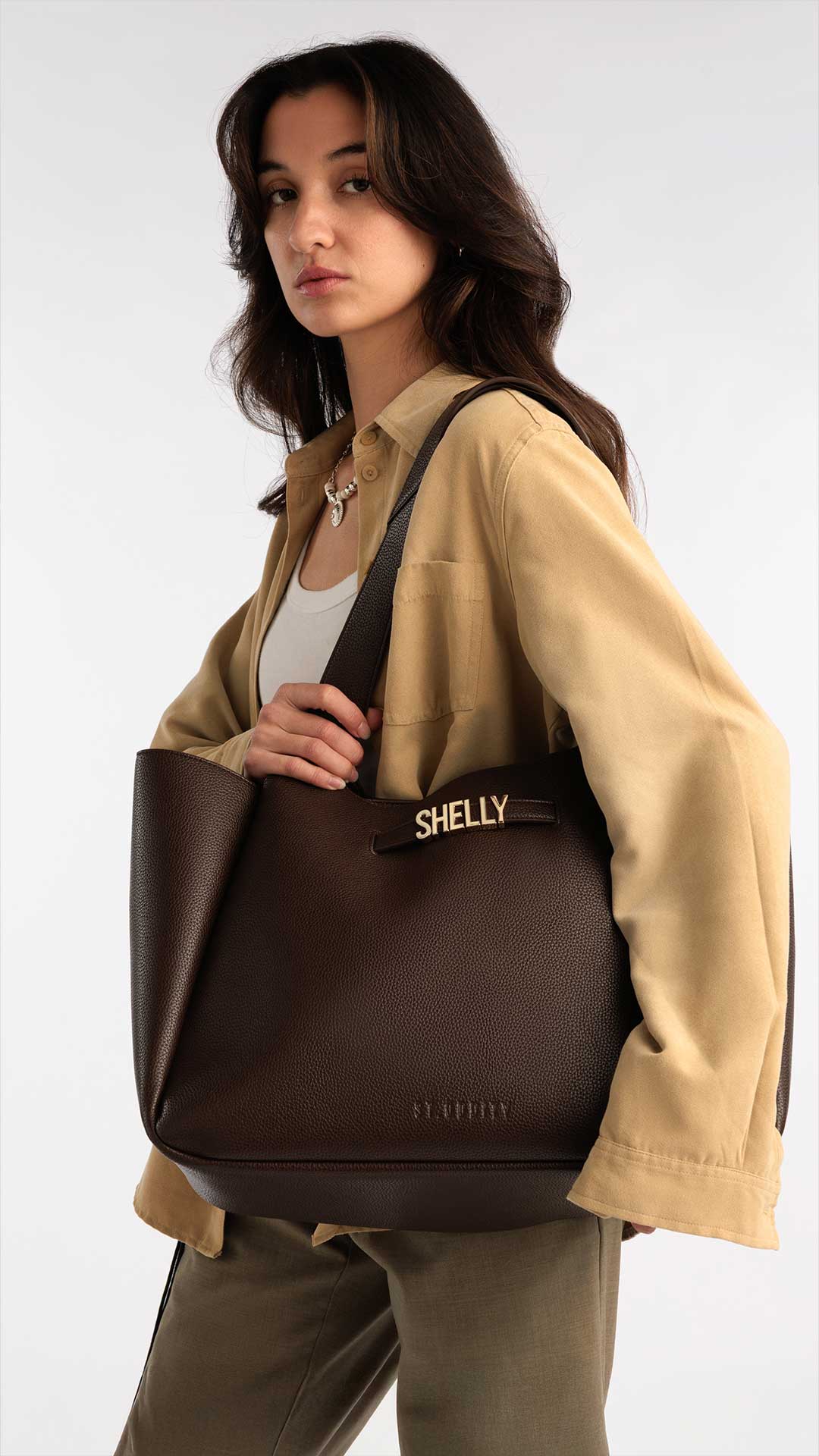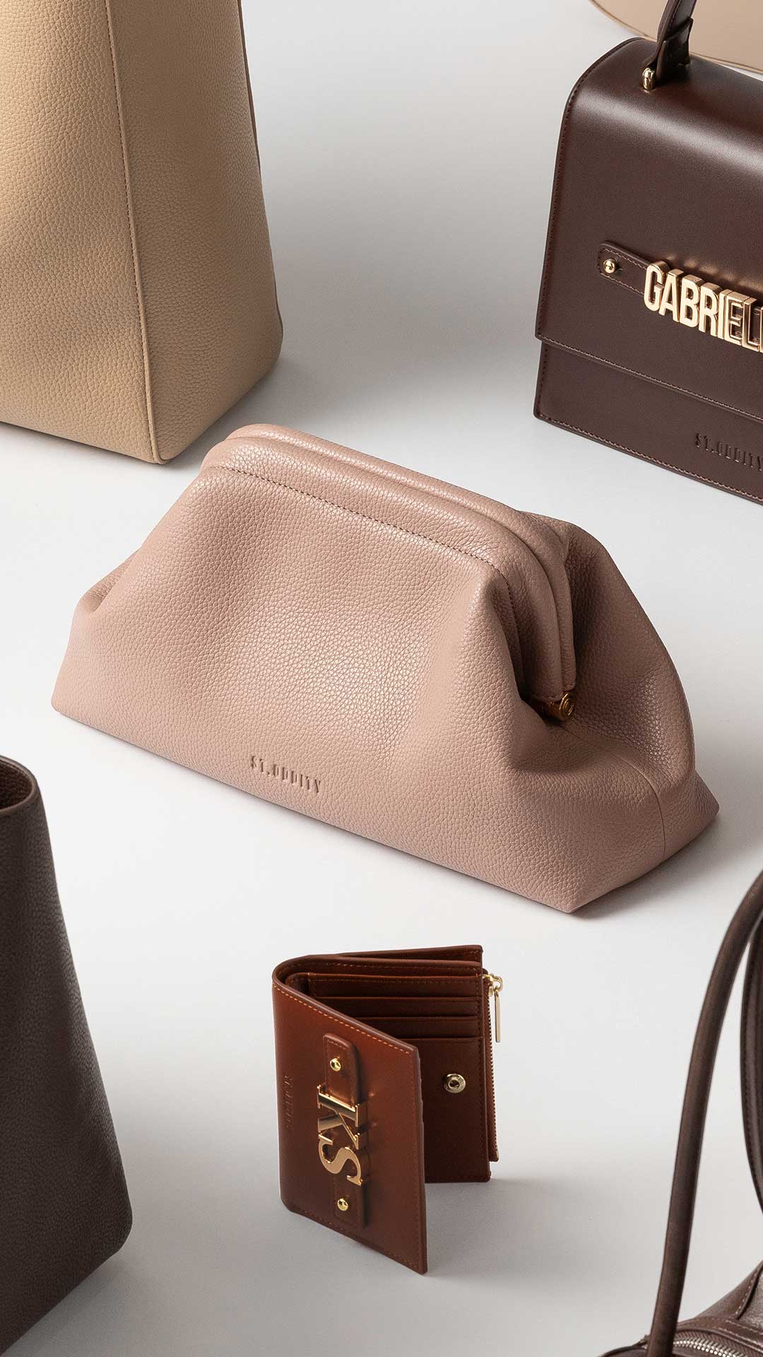 Evening Bag in Mocha with Personalised Hardware